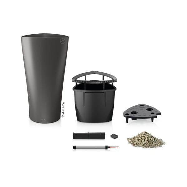 W skład zestawu All Inclusive wchodzą: donica, wkład wewnętrzny z ramą w kolorze donicy, zestaw nawadniający ze wskaźnikiem poziomu wody/pożywki, substrat Lechuza - Pon.