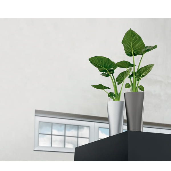 8. System nawadniający - dla donic Lechuza zaprojektowano wydajny system nawadniający, który dzięki gromadzonej wodzie we wkładzie wewnętrznym udostępnia ją roślinom przez dłuższy czas, nawet do 12 tygodni.