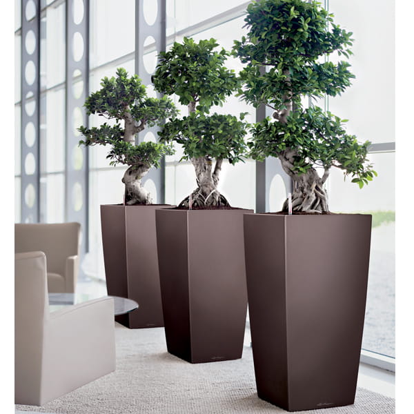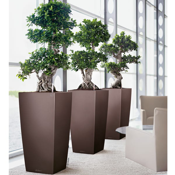 Konstrukcja donic Lechuza umożliwia sadzenie dużych, a nawet kilkumetrowych roślin. Mrozoodporne rośliny można pozostawić na zewnątrz przez cały rok ( donice odporne na mróz ), pamiętajmy jednak aby osłonić wrażliwe części roślin przed silnymi wysuszającymi wiatrami.