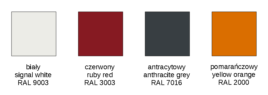 | Kolor | biały połysk, antracyt połysk, czerwony połysk, pomarańczowy połysk |