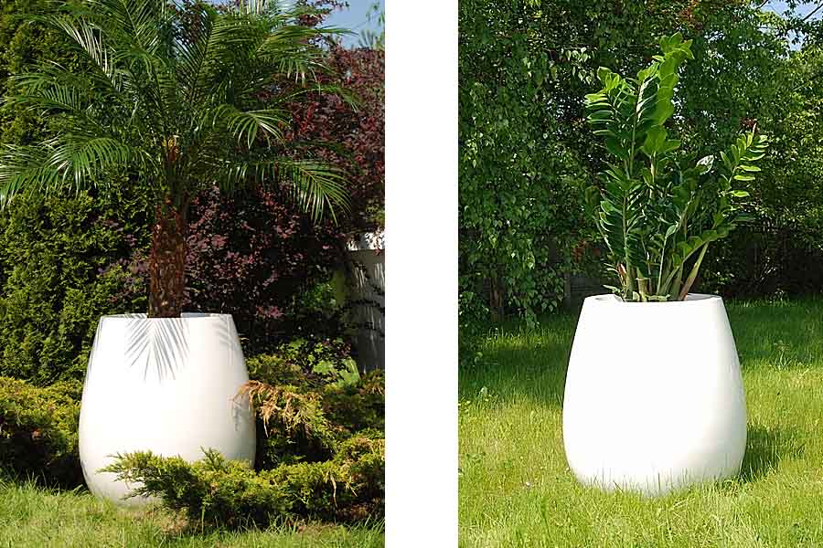 Donice Silba o ciekawym zaokrąglonym kształcie zbliżonym do "łezki" lub gruszki o opływowych i łagodnych liniach konturu. Są w pełni produktem polskim, zaprojektowane do większych i mniejszych powierzchni, wykonane z najlepszych materiałów o wyjątkowej wytrzymałości na wszelkie uszkodzenia mechaniczne. Te cechy idą w parze z odpornością na zmienne czynniki atmosferyczne naszego klimatu: niskie i wysokie temperatury, silne nasłonecznienie, wilgoć, opady deszczu, śniegu oraz biologiczne oddziaływanie w zetknięciu z powierzchnią. Donice Kama Flower serii Silba dobierzemy do każdego pomieszczenia bo ich oferta zawiera kilka rozmiarów, od niewielkich w rozmiarze S aż po zdecydowanie bardzo duże XL o wielkości jednego metra. Dostępne są następujące rozmiary (wysokość x średnica):