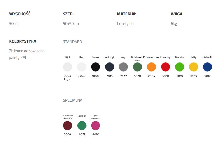| Wymiary | 50x50x50 cm - długość x szerokość x wysokość |