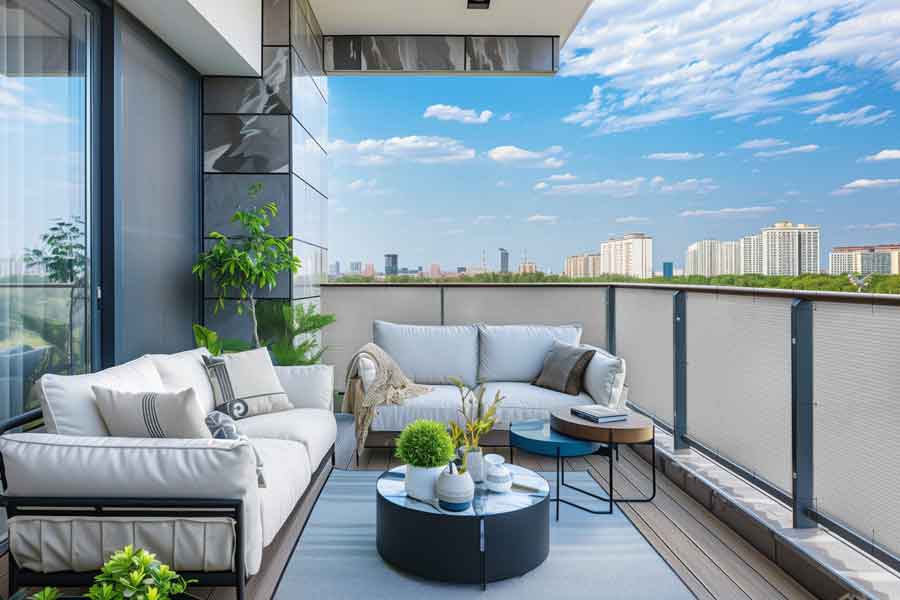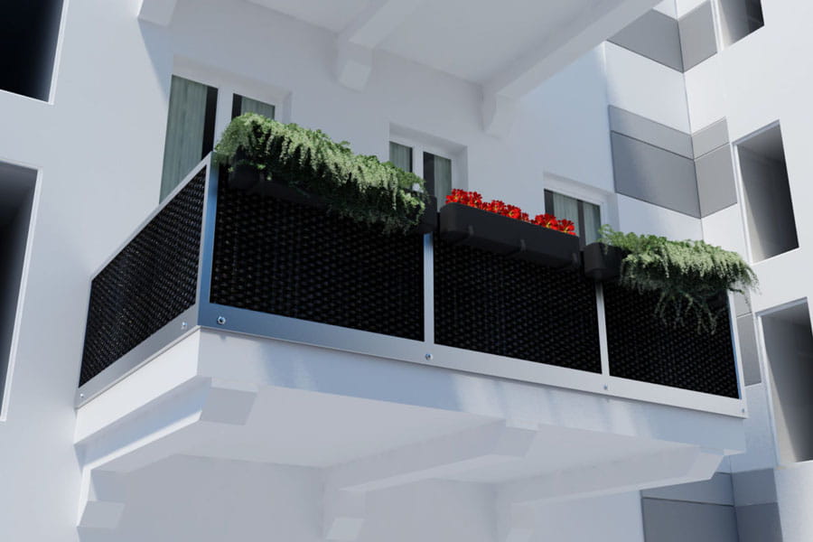 - Jeżeli mata ma być użyta na kilku sąsiadujących bokach balkonu, można zamówić ją w jednym odcinku, gdyż jest elastyczna na tyle, że można ją zagiąć pod kątem prostym.