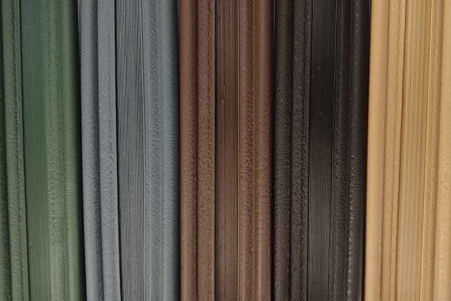 Listwy pionowe są dostępne w kilku atrakcyjnych kolorach: zielony RD12, ciemny szary RD03, jasny brąz RD01, ciemny brąz RD02, słomkowy RD08