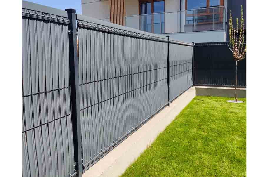 Osłona w postaci listew z tworzywa sztucznego wsuwanych w ogrodzenie panelowe do samodzielnego montażu.