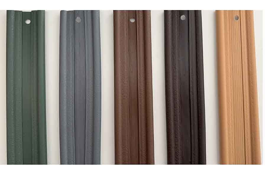 Listwy pionowe są dostępne w kilku atrakcyjnych kolorach: zielony RD12, ciemny szary RD03, jasny brąz RD01, ciemny brąz RD02, słomkowy RD08, antracyt RD05, czarne RD04