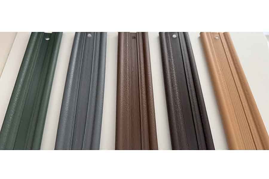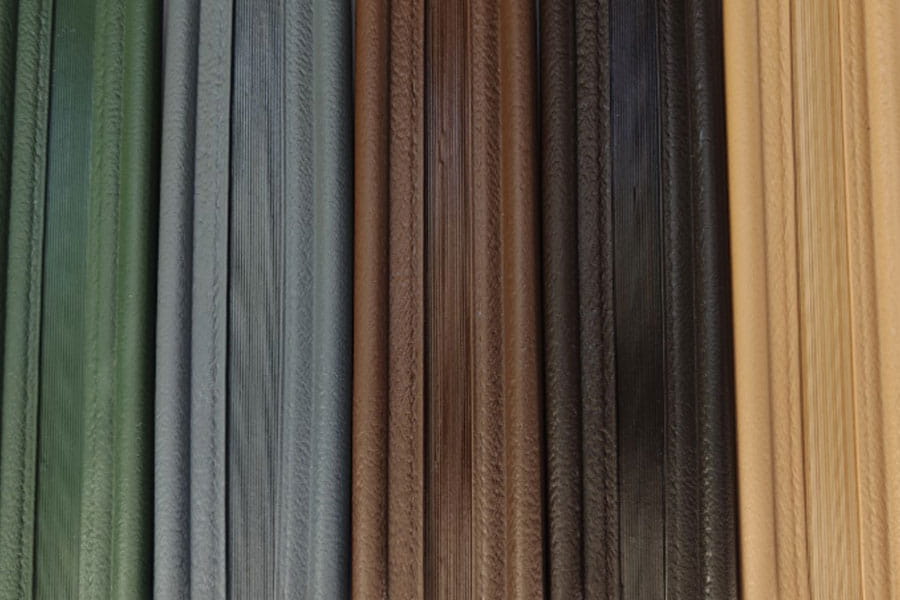 Listwy pionowe są dostępne w kilku atrakcyjnych kolorach: zielony RD12, ciemny szary RD03, jasny brąz RD01, ciemny brąz RD02, słomkowy RD08