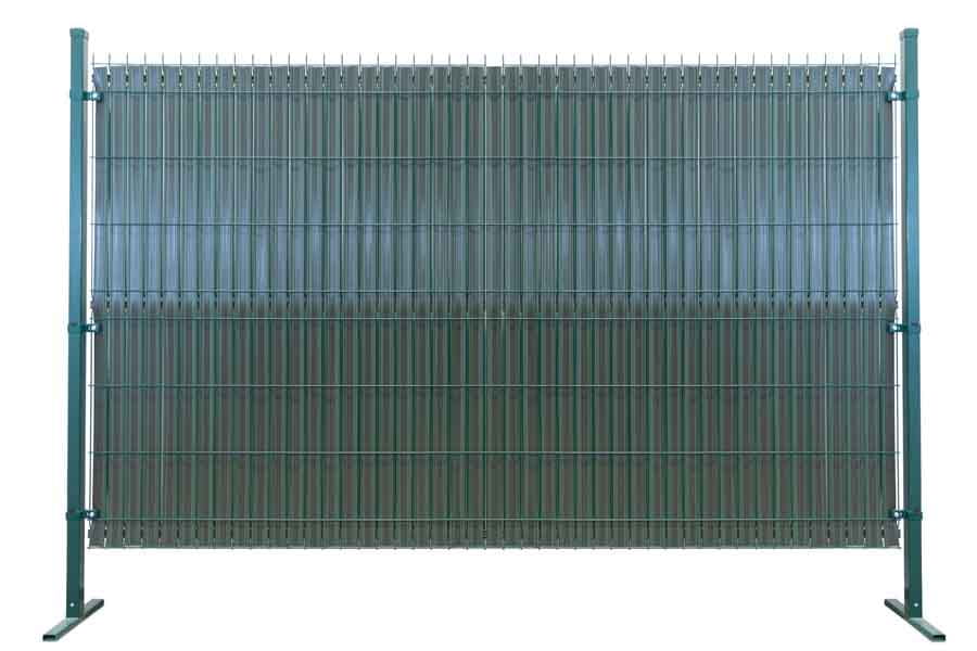 Osłona w postaci listew z tworzywa sztucznego wsuwanych w ogrodzenie panelowe do samodzielnego montażu.