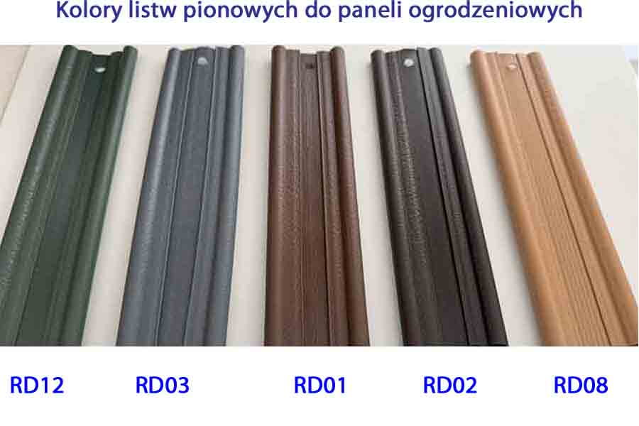 Listwy pionowe są dostępne w kilku atrakcyjnych kolorach: zielony RD12, ciemny szary RD03, jasny brąz RD01, ciemny brąz RD02, słomkowy RD08
