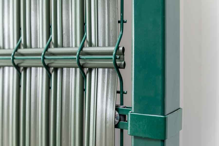 Osłona w postaci listew z tworzywa sztucznego wsuwanych w ogrodzenie panelowe do samodzielnego montażu.