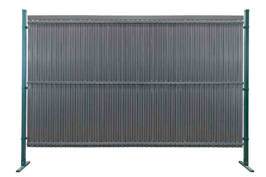 Osłona w postaci listew z tworzywa sztucznego wsuwanych w ogrodzenie panelowe do samodzielnego montażu.